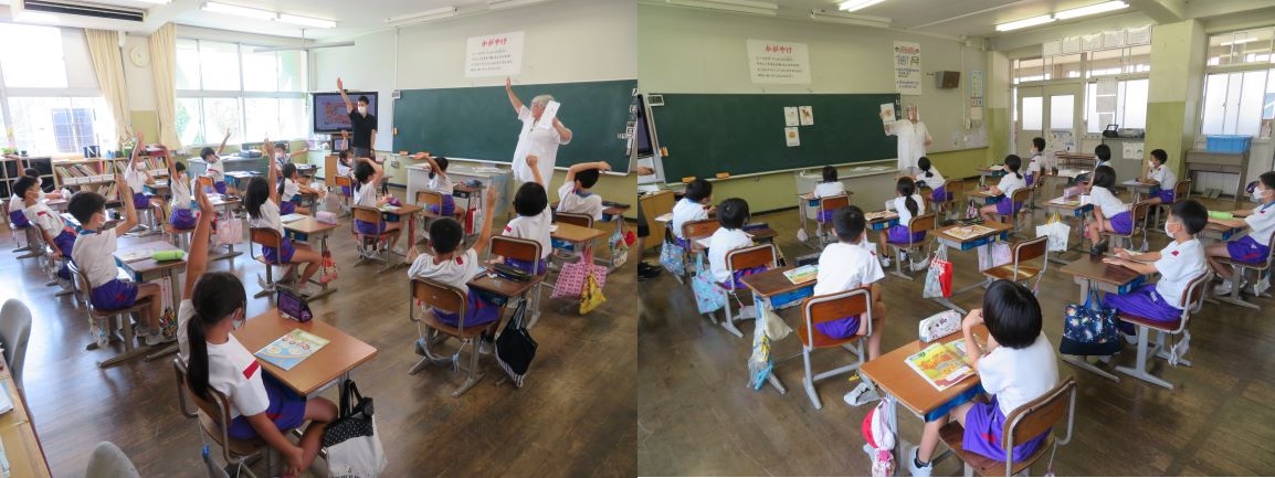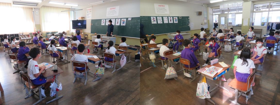 元気のない、悲しい表情の写真と笑顔で、元気な表情の写真を見たときの違いに気づき、「みんなには、共感させる力があること」を確認しました。