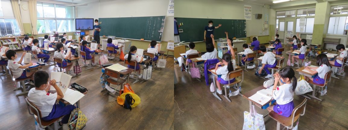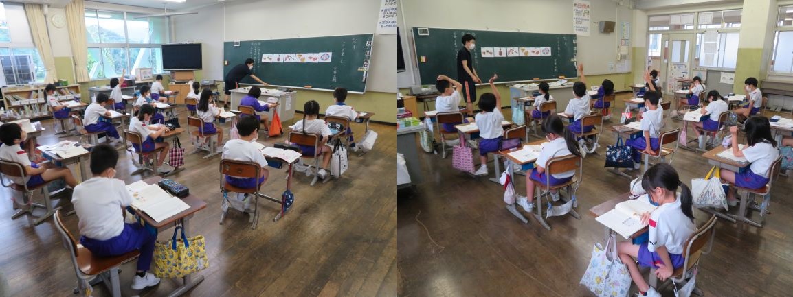 前の時間に勉強した「こそあど言葉」について確認した後、2つの文章を比べて、こそあど言葉を見つけたり、それが指し示す内容を見つけたりしています。
