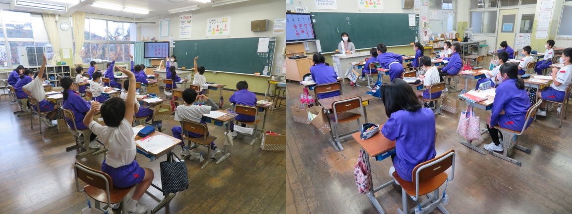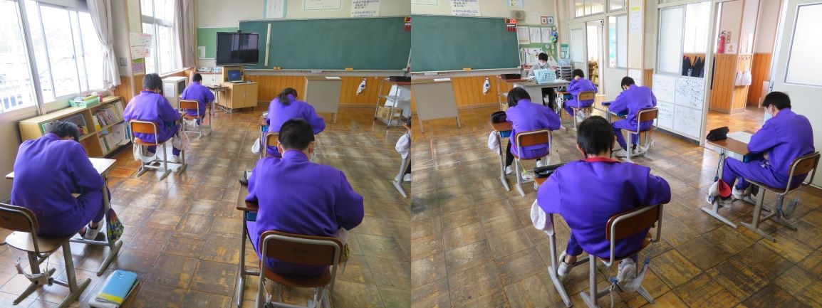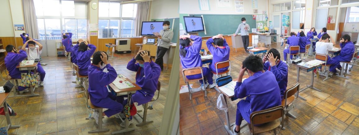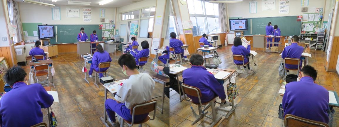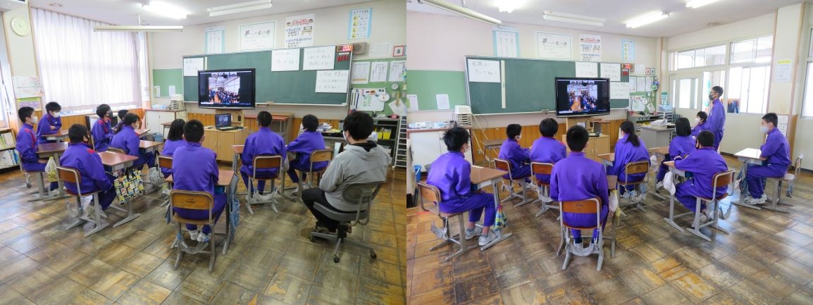 今日は3限目に、角鹿中学校2年生による「新1年生サポートプロジェクト」が、遠隔システムを活用して行われました。 内容は、①角鹿中クイズ、②部活動紹介、③お悩み相談でした。どの企画も、よく工夫されたもので、6年生の皆は、クイズにリアクションしたり、中学校生活への不安に応えてもらったりして有意義な時間を過ごすことができました。角鹿中2年生の皆さん、ありがとうございました。 |