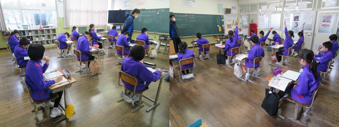 | 概要 | 「比例と反比例」のまとめとして、算数web単元問題にチャレンジしています。みんな、真剣な表情で問題を解いています。 |