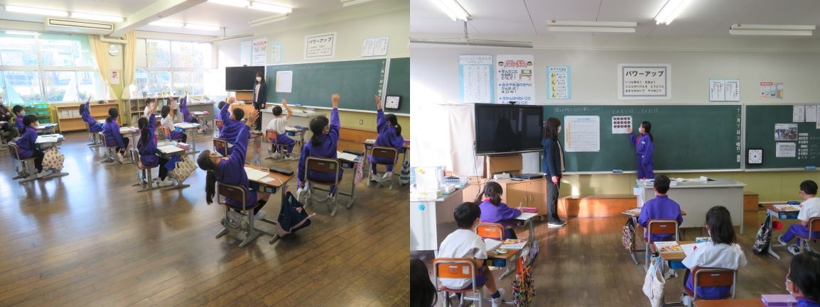 「いえの名人をさがそう」 お家の人の中で、いろいろなことの名人をまとめて発表しています。発表を聞いた後、みんなは聞きたいことを質問して、発表者は、しっかりとこたえていました。 |