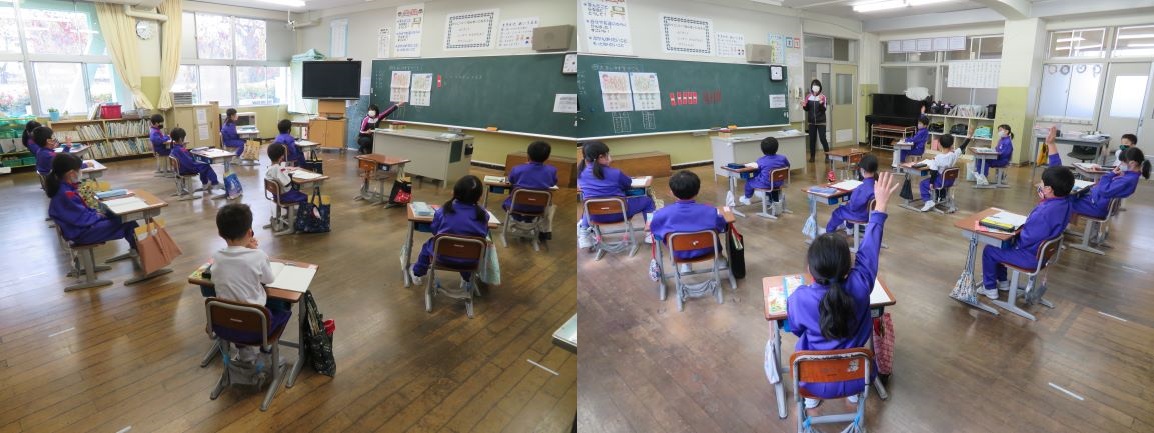 「おにごっこ」 新しい単元に入りました。まずは、教科書を、みんなで読んでいます。 |
