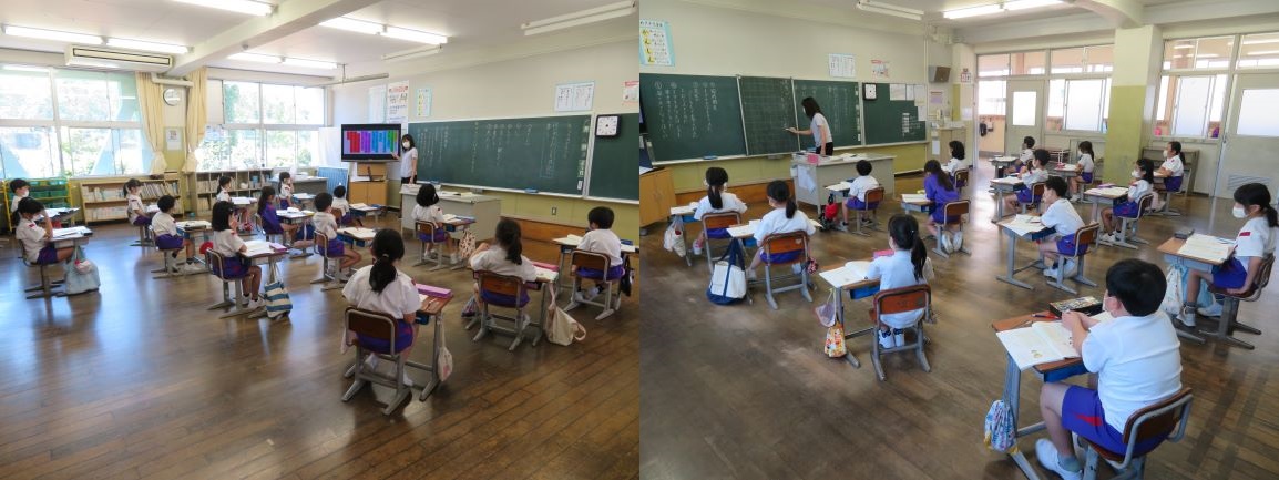 日本の国土について、その位置や周りの海、どんな島で成り立っているかなどを、資料を見ながら学習しています。
