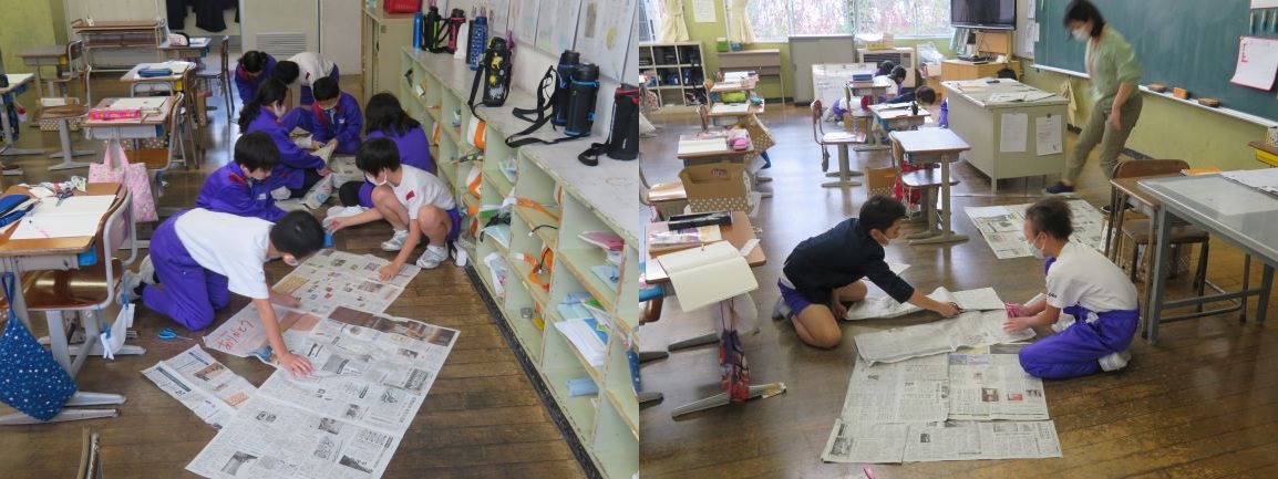 「新聞を読もう」 今日は、ミニ新聞を作ります。気になる記事はあるかな? 記事を物色中!!よし、これだ!! |