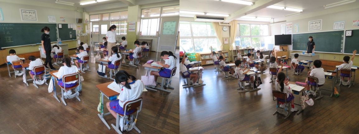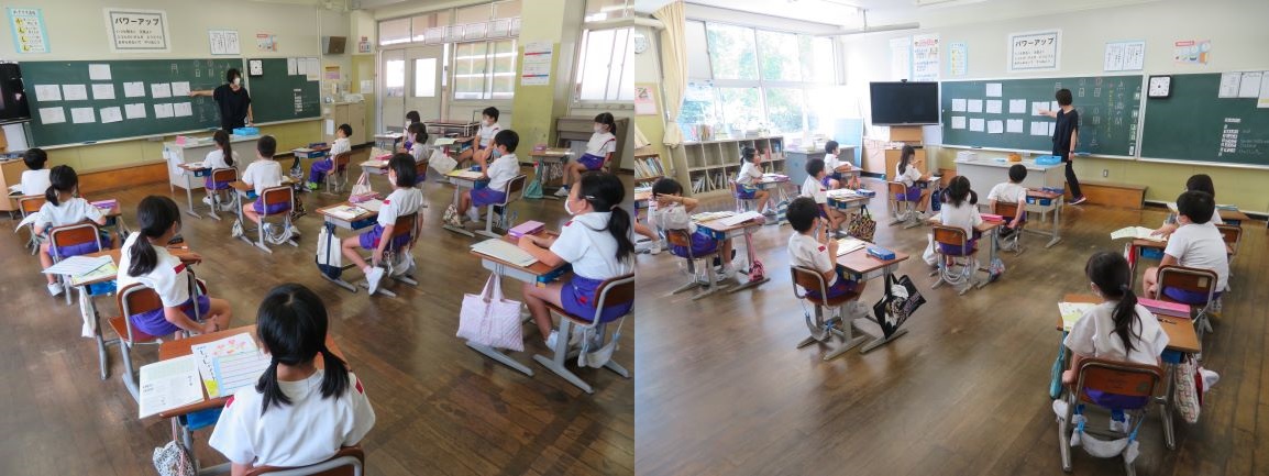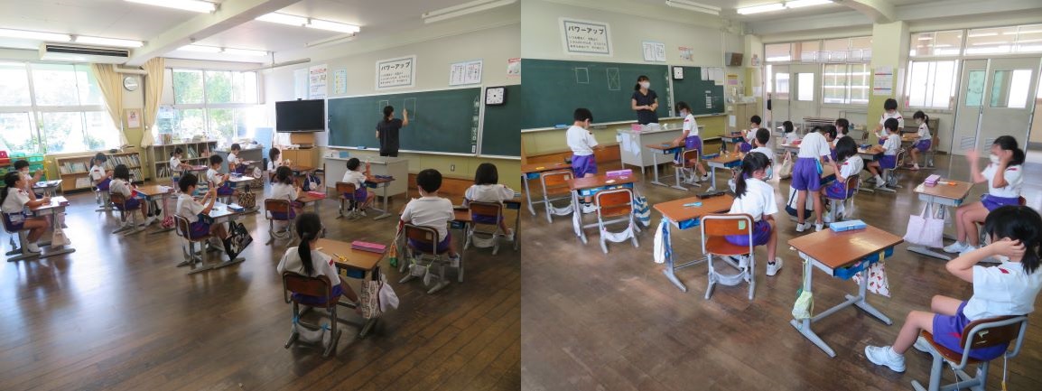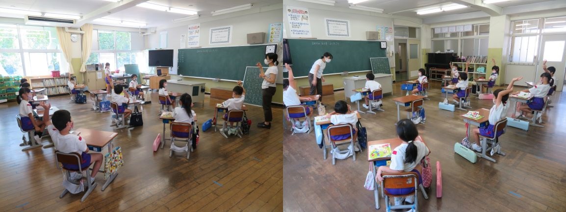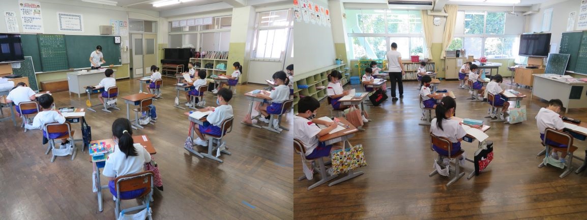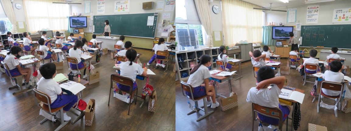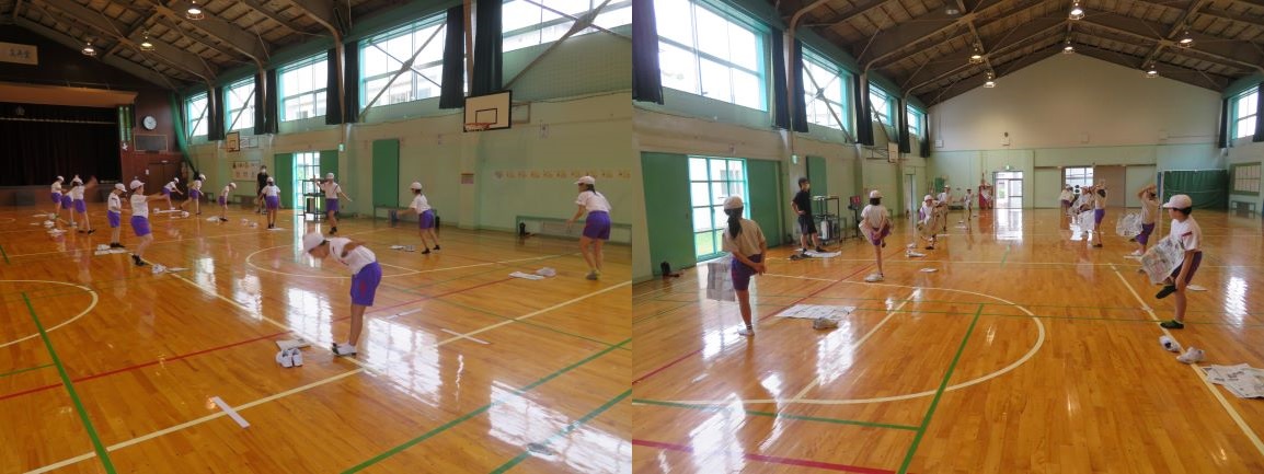 | 概要 | 前半は、体育館で5分間走をした後、後半は、教室でラジオ体操の練習をしています。1年生のみんなも、がんばっています。 |
