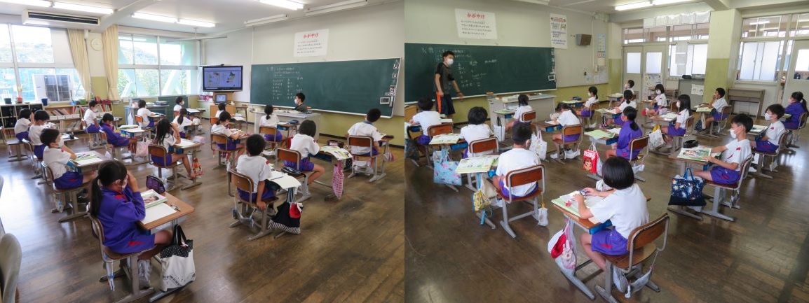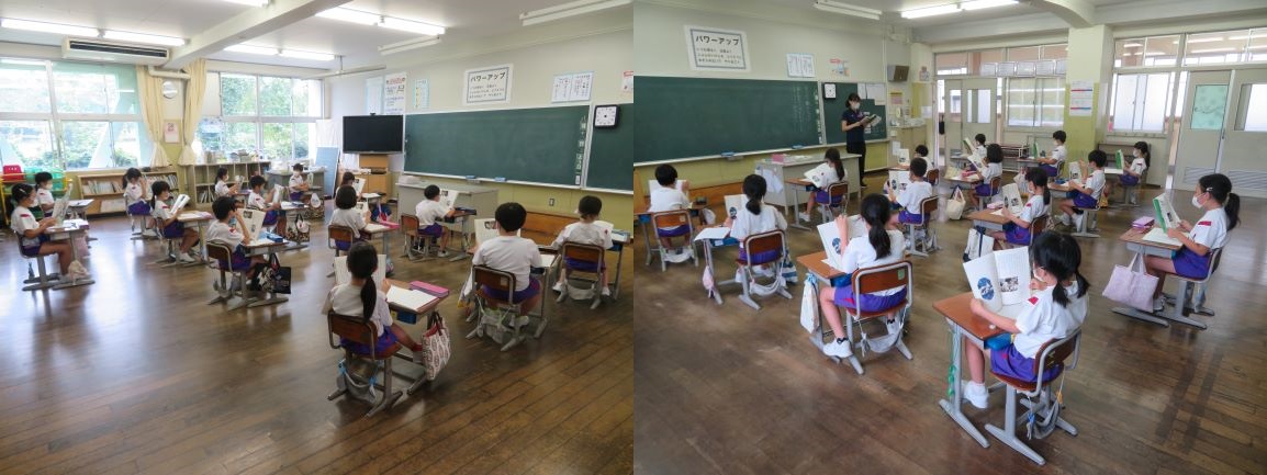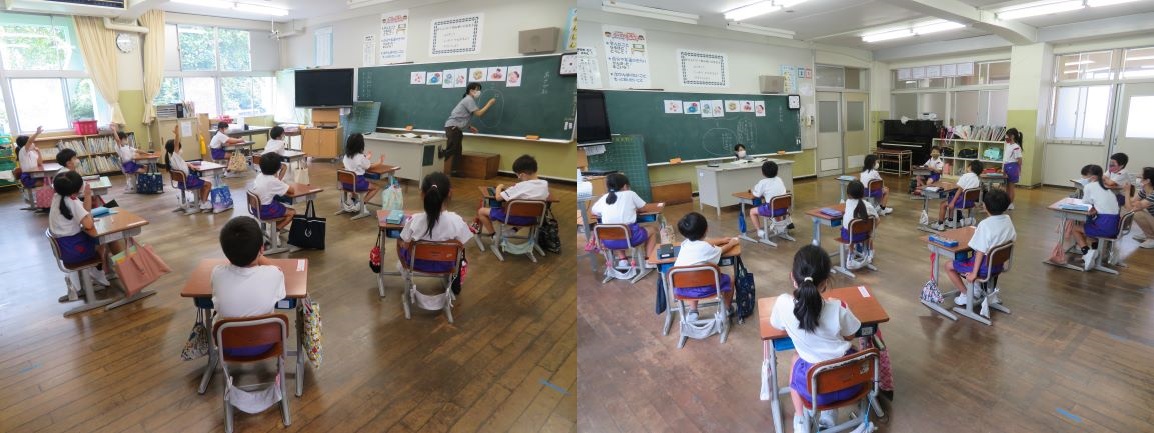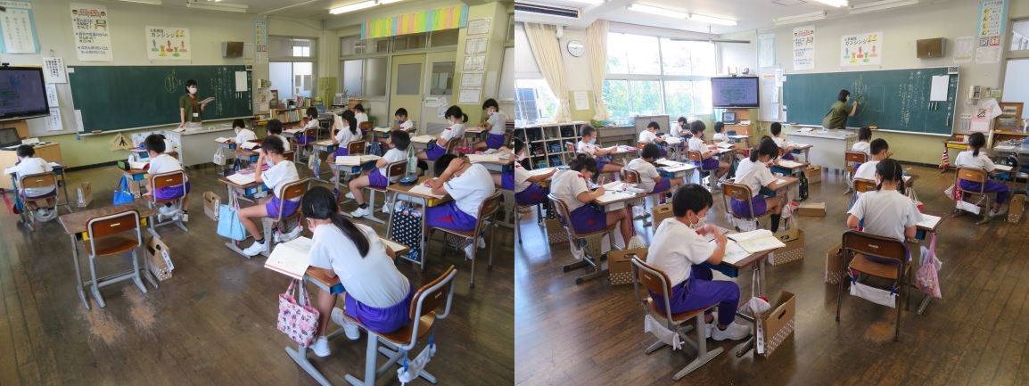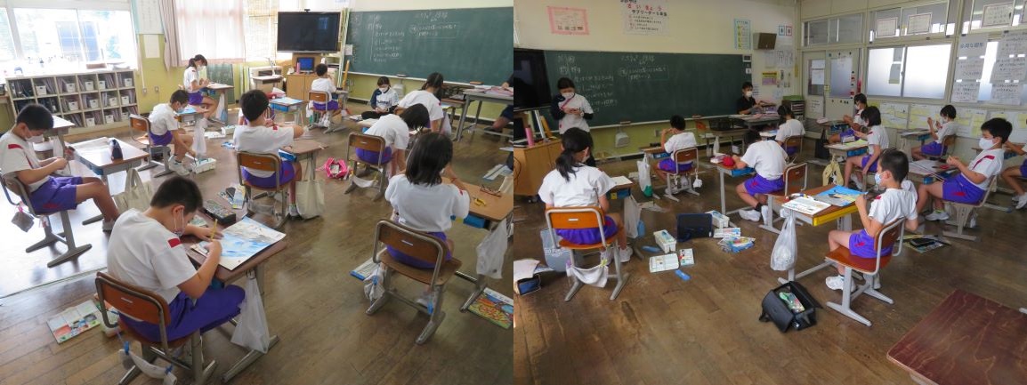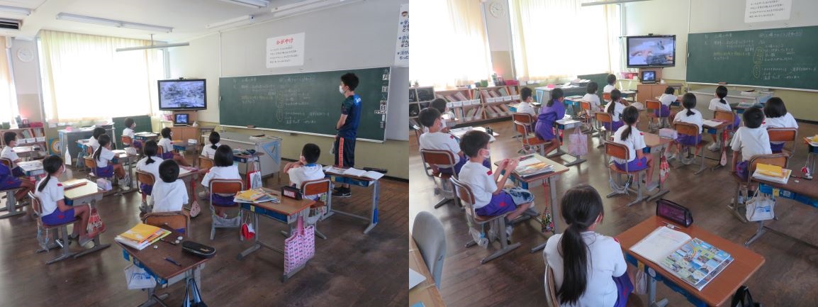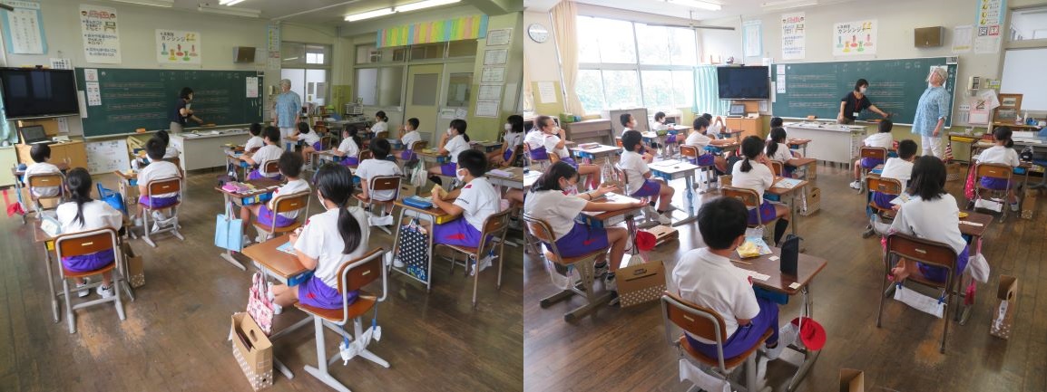 | 概要 | 前半は、体育館で5分間走をした後、後半は、教室でラジオ体操の練習をしています。1年生のみんなも、がんばっています。 |