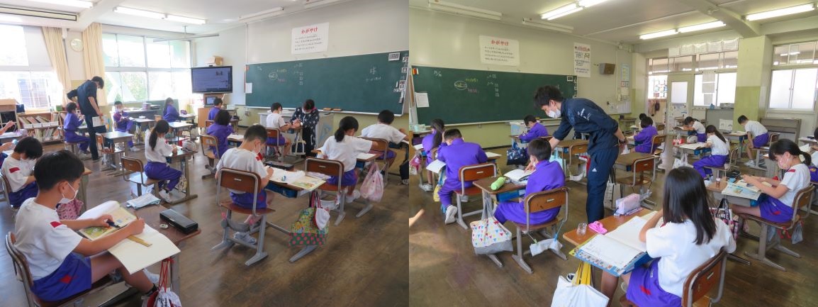概要 今日は、専門の講師の先生をお招きして指導をしていただきました。「つり」という字を練習しています。何度も何度も、一生懸命書いて、練習しています。