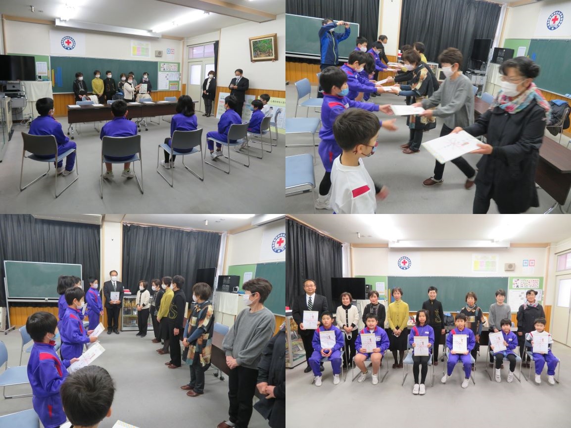 | 概要 | 今日は、3限後の休み時間に、東郷婦人会の7名の皆様がご来校され、各学年の代表児童に手作りクリアファイルを贈呈していただきました。3月で閉校となる咸新小の児童全員に、「全校児童の写真」「中池見の手書きイラスト」「校歌」が印刷された、記念のクリアファイルを、クリスマスプレゼントもかねて、お贈りいただきました。ファイルの間には、咸新っ子を励ます手作り短歌の色紙も入っており、とても内容の濃い、心温まる贈り物を、ありがとうございました。心より感謝申し上げます。 |