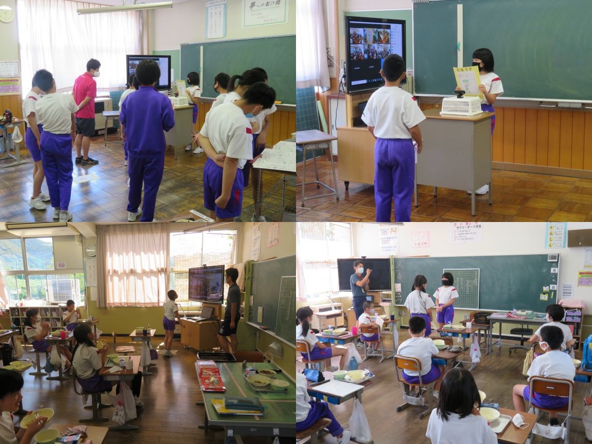 | 概要 | 今日は、給食の時間、オンラインを活用して、学校向上委員会(6年生)が企画した、「学校のキャラクターコンクール」の表彰が行われました。「すばらしかったで賞」「優秀賞」「最優秀賞」の順に発表がありました。最優秀賞に選ばれた作品は、今後のいろいろな学校行事の中で活用していきます。学校中に、大きな拍手がひびきわたりました。 |